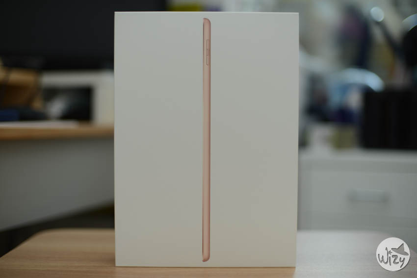 상자 옆면에는 사과 로고와 아이패드라는 제품명만 깔끔하게 표시되어 있다.