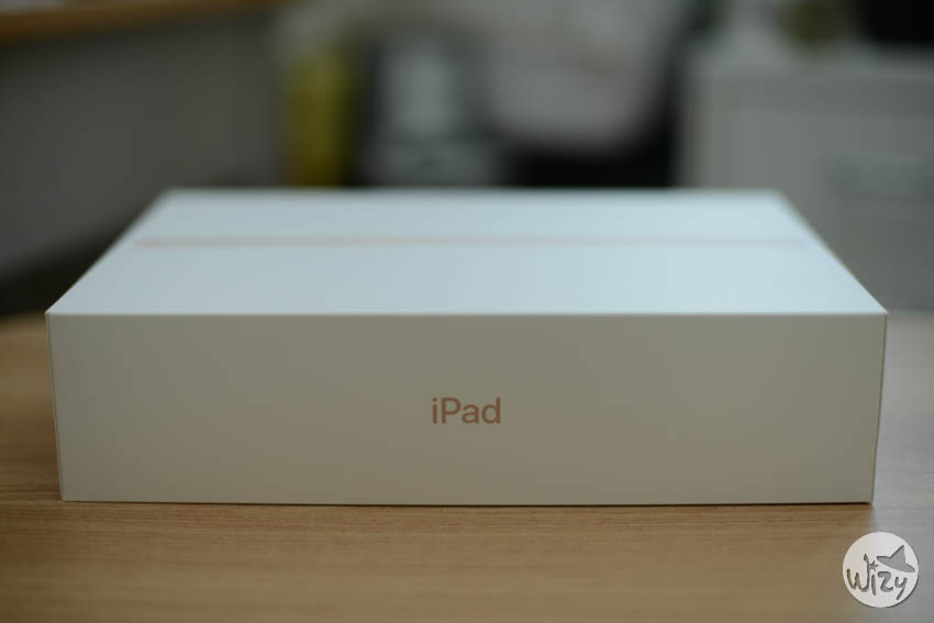 상자 옆면에는 사과 로고와 아이패드라는 제품명만 깔끔하게 표시되어 있다.